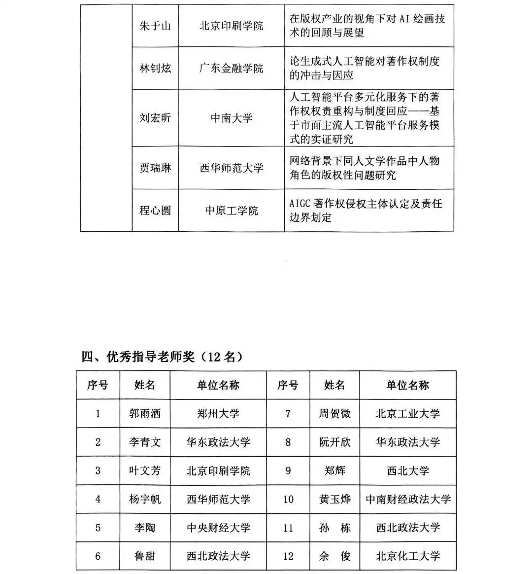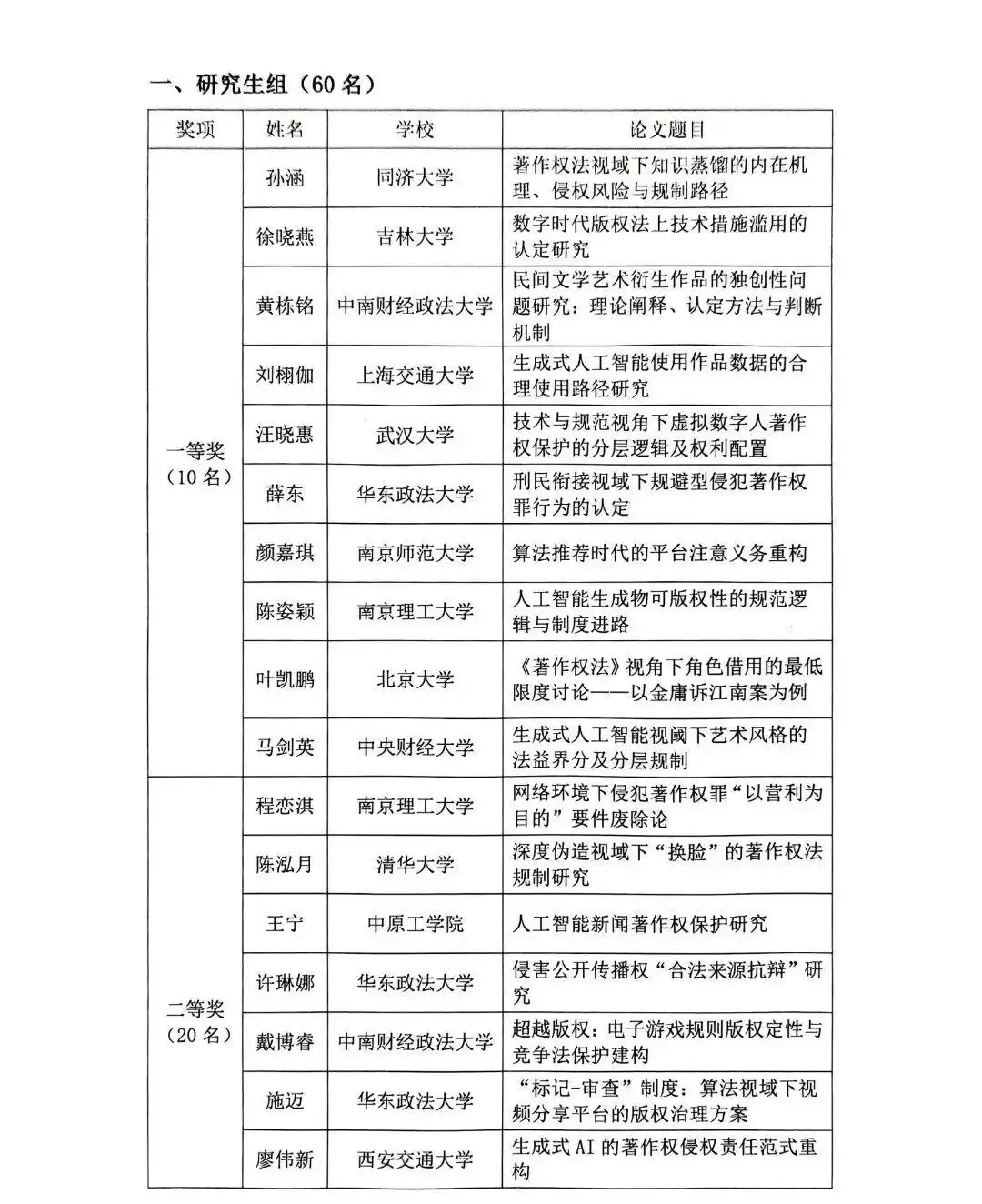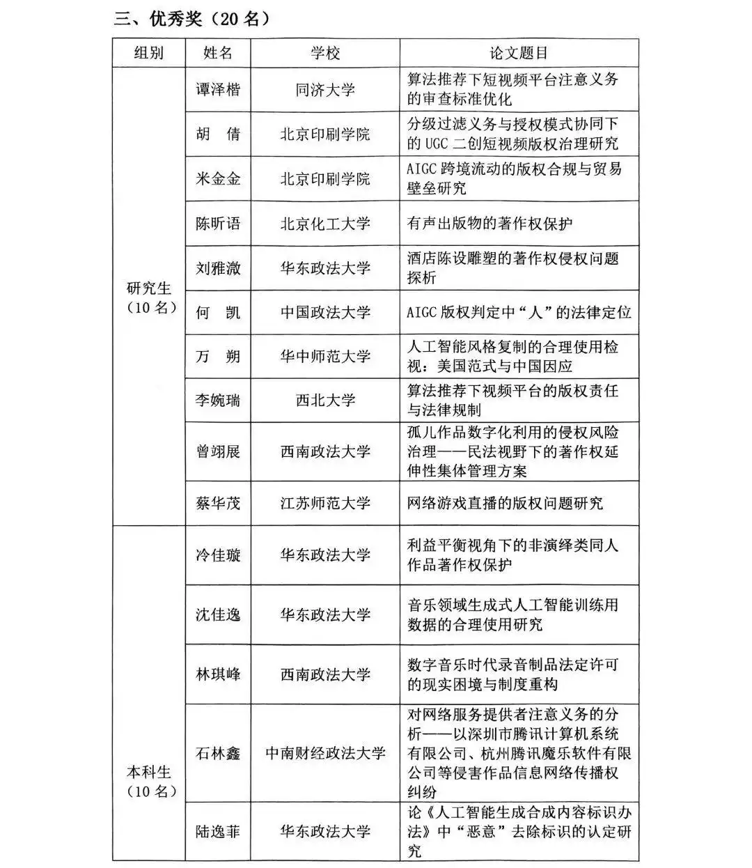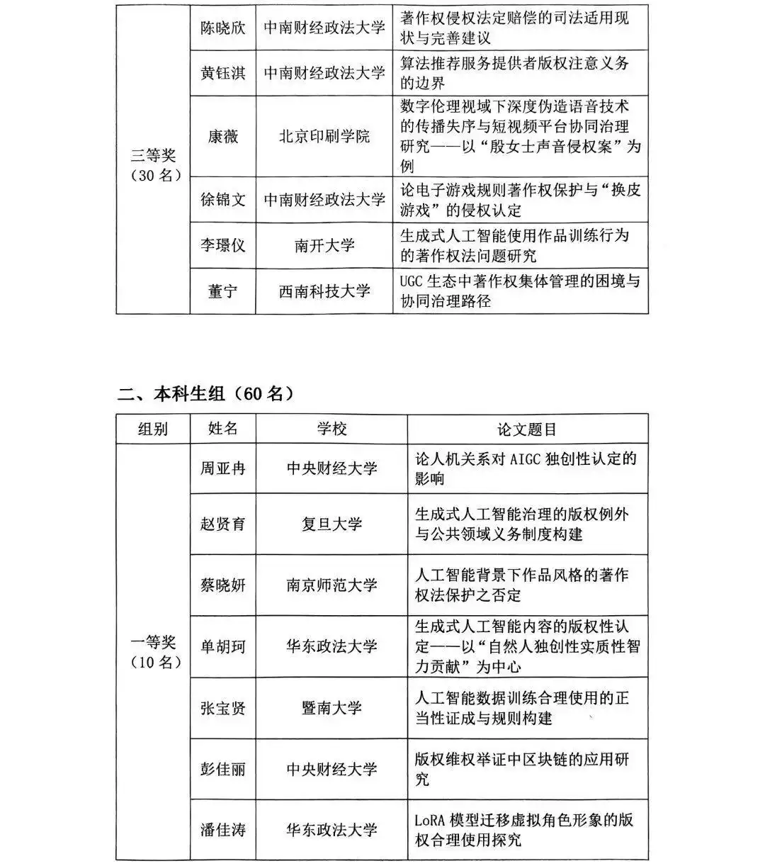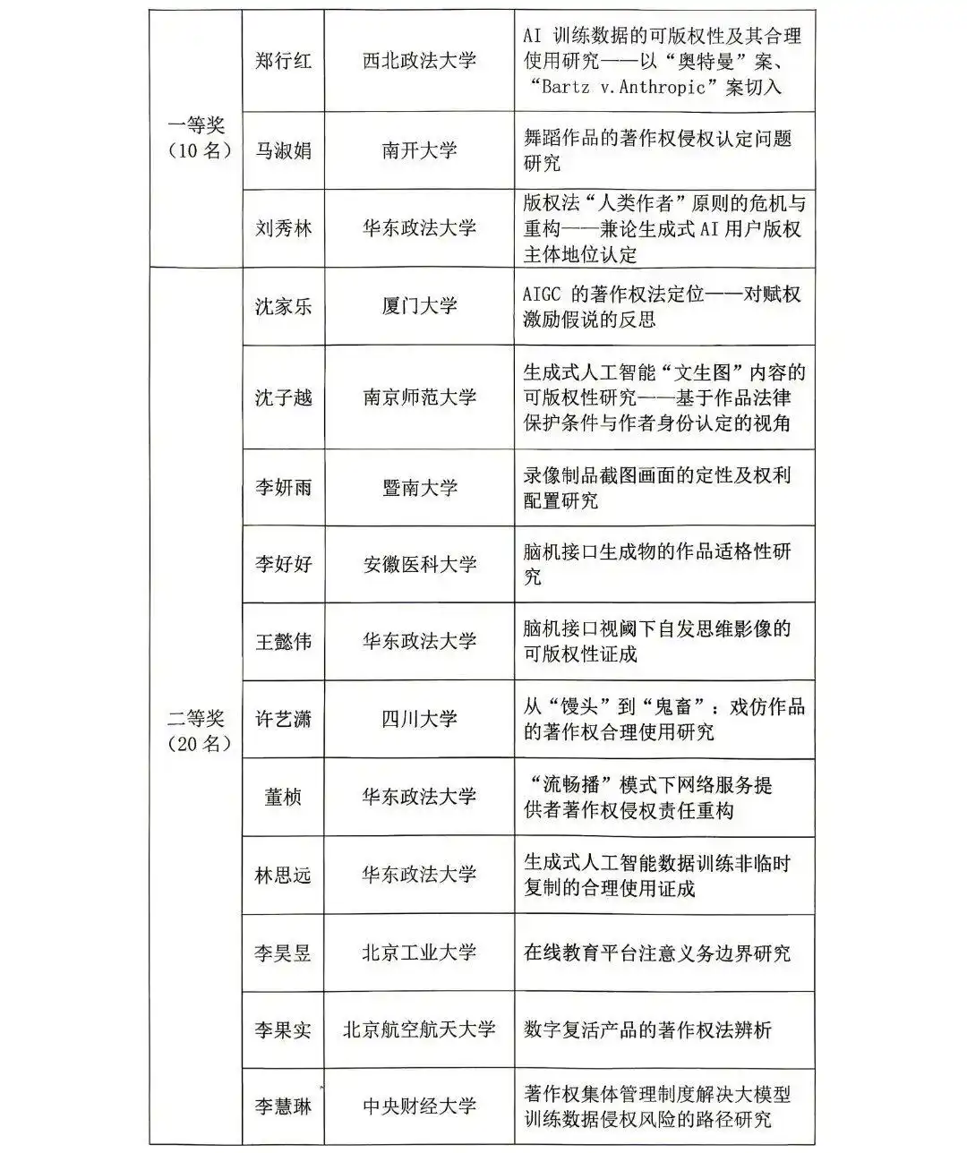 2025年全国大学生版权征文获奖公示名单